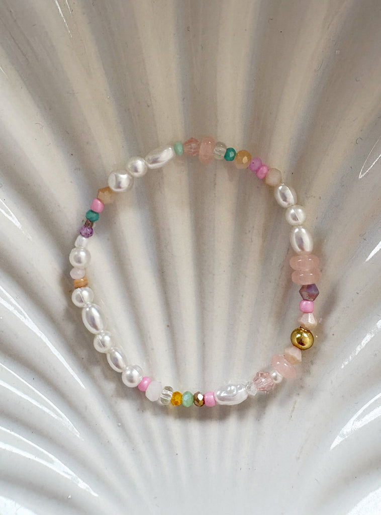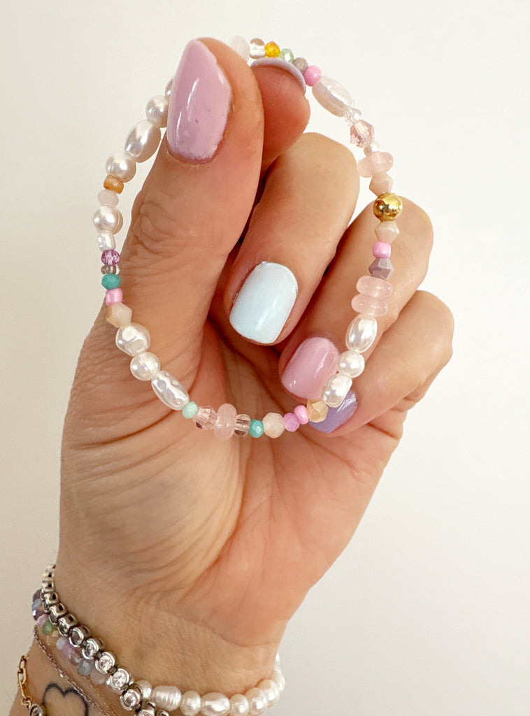 PASTEL Bracelet is created with a gorgeous selection of small beads and imitation pearls. Love the different shapes and sizes of the beads. Not one bracelet is the same.